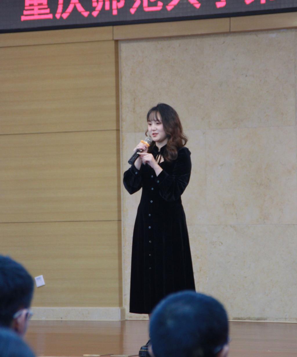 回想以往,在from CQNU to the world的这条路上,她遇到了很多困难,也有听到了很多质疑的声音,但正是这些经历,让她反而更加坚定的想要在这条路上走下去。她是一名中共党员,文化自信,扎根于心,未来的计划虽然求学于海外,但非常期待在每一个国际场合,展示她的专业能力,作为一名中国学生去努力地发出自己的声音,去跟国际的师生介绍中国变化,讲好中国故事,分享中国历史。大学的四年是人生宝贵的四年,学知识、长本领、见风雨、知人生,希望你们好好珍惜,努力成为你们想成为的人。