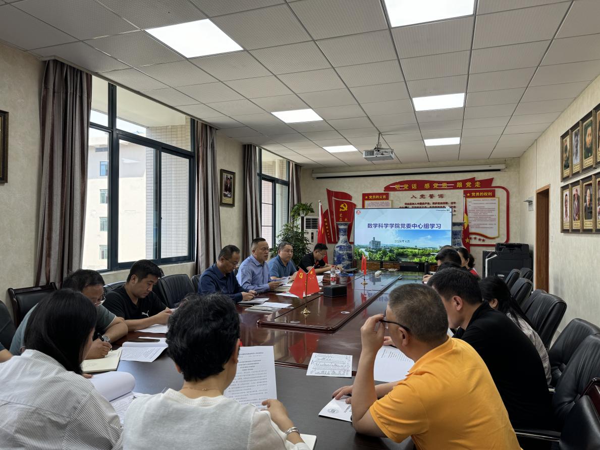 2024年4月28日下午,学院党委中心组在汇贤楼326会议室召开专题学习会。会议由党委书记杨江水主持,学院党委委员、科级干部、院长助理、各支部书记、专职组织员参会。