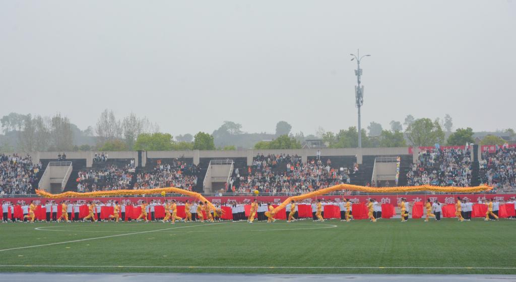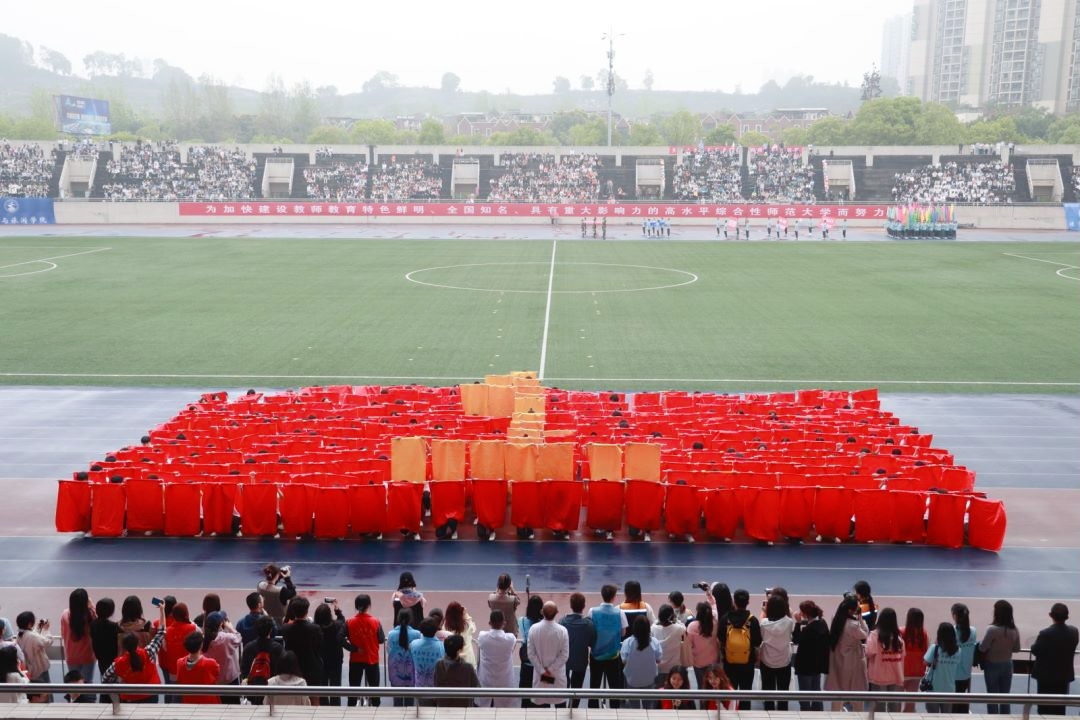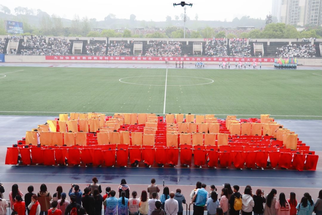 4月11日上午,运动会开幕式拉开帷幕。我院带来的开幕式表演,以一场震撼人心的舞龙表演拉开帷幕,舞龙者手持金色长龙,宛若神龙腾空盘旋,勾勒出一幅栩栩如生的神奇画卷。紧接着,国旗队、校旗队、标语队、彩旗队、院旗队、学院方阵依次进入会场,走过主席台,27个风格各异的方阵,27支满腔热忱的队伍。其中,我院2023级325名同学手持红橙双色彩旗,手中的彩旗翩翩起舞,交织出一幅色彩斑斓的壮丽画卷。彩旗舞动间,相继呈现出“1954”、“2024”、“70”、“校徽”、“无穷”、“爱心-党徽”、“cnu”的字样,寓意着七十年征程的壮阔历程,岁月的不朽荣光。最后,手持飘飘彩带的舞蹈表演者们以优雅的舞姿为整场表演画上圆满的句号。
