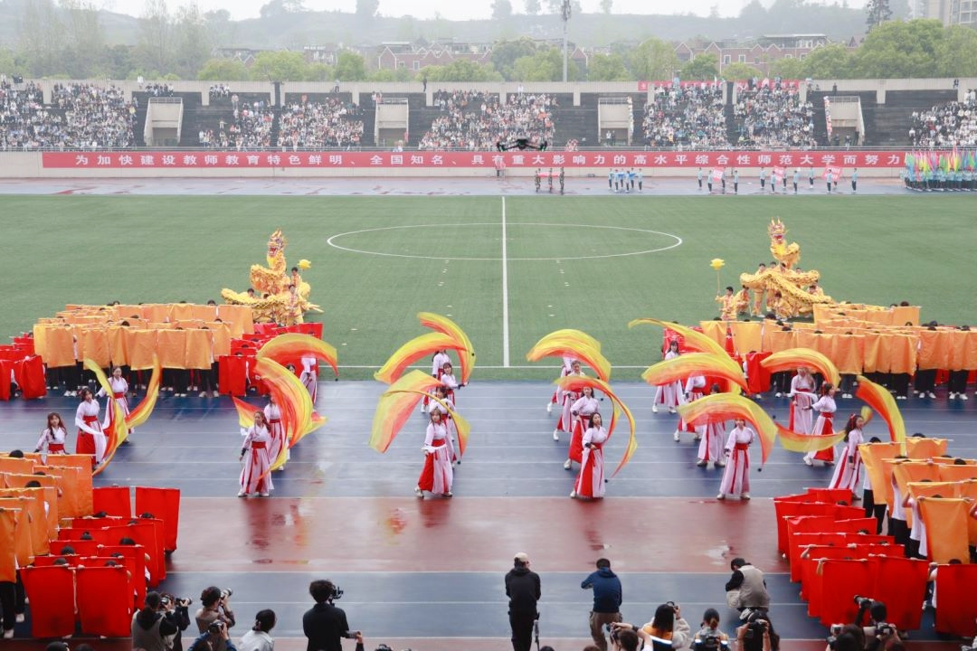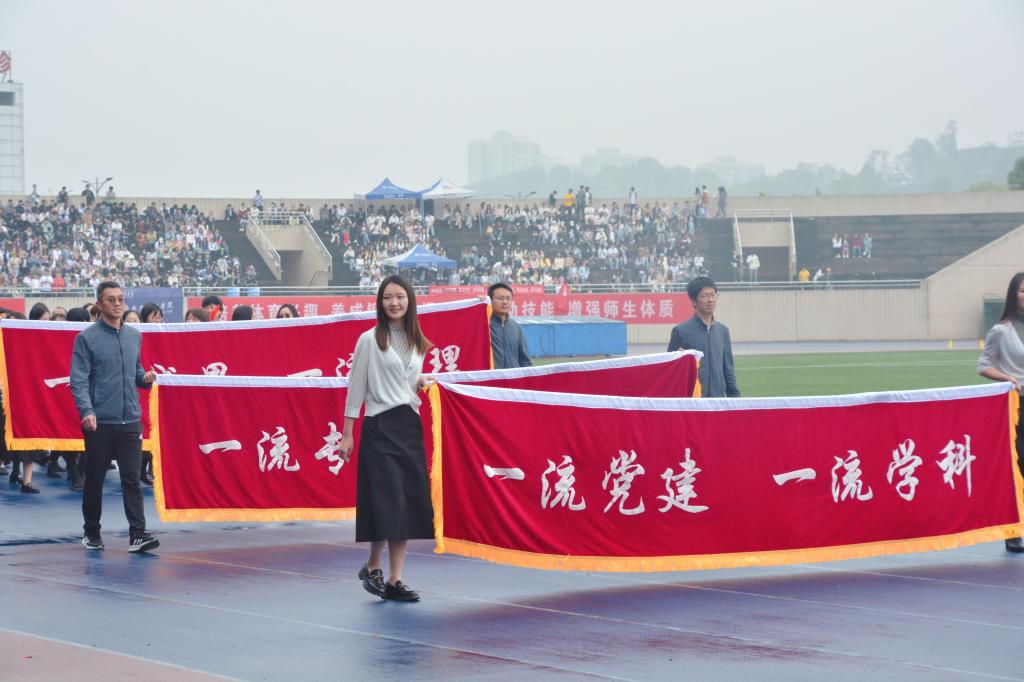 从解说词改稿、录音,到各类物资的准备,再到项目人员的部署、训练,全院师生齐心协力。晴空万里,亦或是细雨蒙蒙,训练场早已有了旗操队、舞龙队、舞蹈队、彩旗队、国旗队、校旗队、院旗队等各支队伍的身影。他们先于日出而行,伴着星光而归,用一次又一次的严格训练,力争呈现出最具有数院风采的开幕首秀。从最初的规划到最后的落实,每一个环节淋漓尽致展现了重师数学人的精神——“责任,奉献,奋进,创新”。