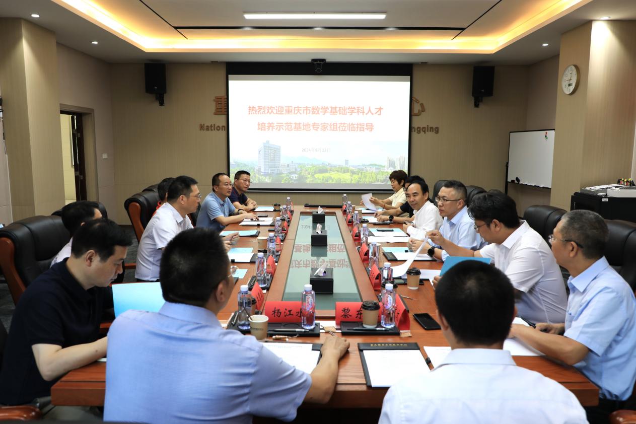 为深入贯彻落实党的二十大精神和习近平总书记关于教育的重要论述精神,扎实有效推进重庆市基础学科人才培养示范基地项目建设,2024年6月13日上午市教委组织专家对我校于2021年8月立项的市级基础学科人才培养示范基地进行终期验收入校考察。考察分专家见面会、参观重庆国家应用数学中心、座谈会和专家反馈会四个阶段进行。