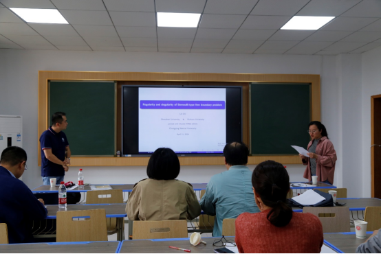 2024年4月11日下午,国家杰青、深圳大学数学与统计学院杜力力院长应邀到我校PA视讯官网527报告厅作学术交流,并作题为“Bernoulli-型自由边界问题的正则性和奇异性”学术报告。 PA视讯官网应用数学系主任周寿明教授,谢莉教授,电子科技大学向昭银教授,西华大学王玉兰教授及部分本校青年老师、本科生、研究生参会,会议由谢莉教授主持。