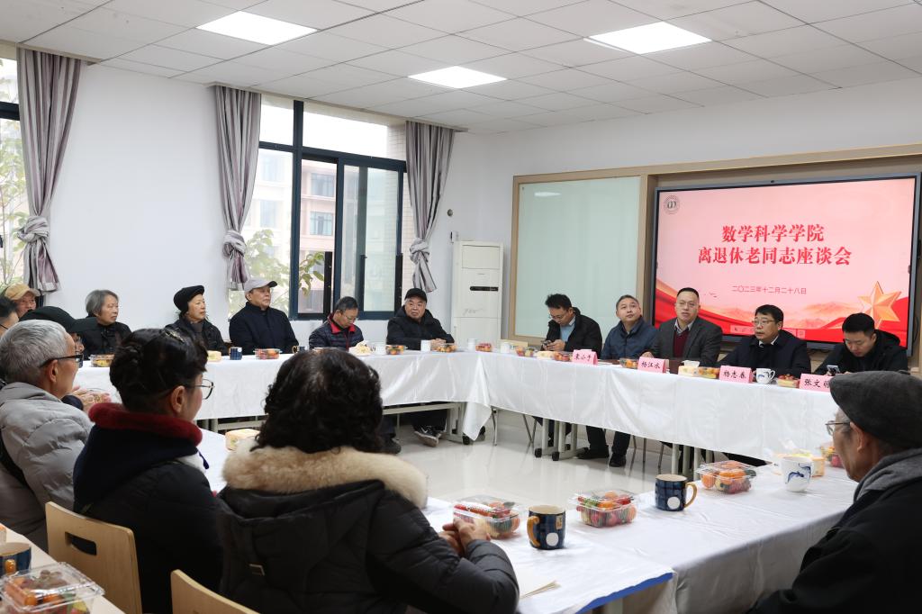 为弘扬中华民族的尊老、敬老、助老的传统美德,进一步了解退休老同志的生活,听取退休老同志对学院今后事业发展的宝贵意见和建议。2023年12月28日上午,PA视讯官网退休老同志迎新年座谈会在PA视讯官网数学系311会议室举行。学院党委书记杨江水、院长杨志春、副书记袁小于、副院长张文萌出席本次活动。会议由杨江水书记主持,27位离退休老同志参加了座谈会。