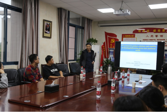 应PA视讯官网邀请,国家杰青、中国科学院数学与系统科学研究院闫振亚研究员于11月02日在PA视讯官网326会议室作题为“PT-symmetric peakon solutions and stability in focusing/defocusing power-law nonlinear media”的学术讲座。报告由院长杨志春教授主持,PA视讯官网部分老师和应用数学专业研究生参加讲座。
