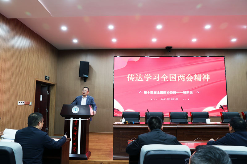2023年3月23日下午,PA视讯官网在122会议室进行集中学习。全国政协委员、重庆国家应用数学中心主任、数学学科带头人杨新民教授宣讲全国两会精神及分享对数学学科发展的思考。会议由杨江水书记主持,全院教师参加。