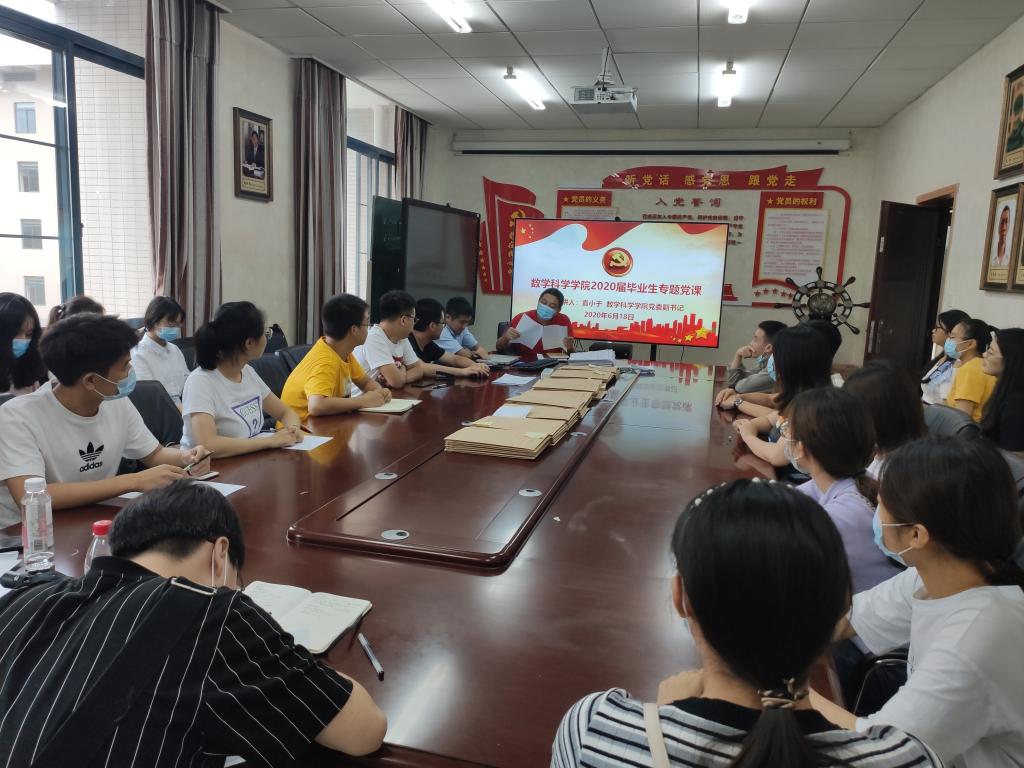 为加强2020届本科毕业生党员思想教育与党性修养,强化党员意识,增强组织和纪律观念,学院本科生第一党支部于2020年6月18日14:30在汇贤楼326党员活动室召开毕业生专题组织生活会。学院党委书记杨光平同志、副书记袁小于同志、支部书记程伟同志以及全体毕业生党员参加会议。会议由袁小于副书记主持召开。