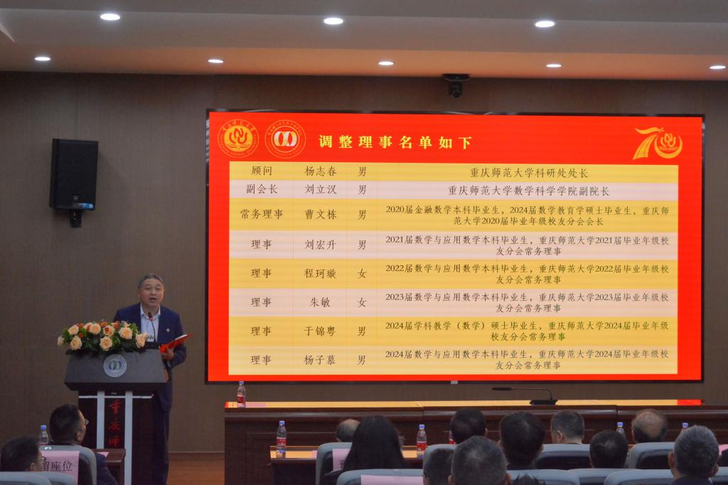 会上,学院党委副书记、校友分会秘书长袁小于,做了《关于PA视讯官网校友分会理事任期届满和成员变更征求意见的说明》,并提交大会审议。经与会校友代表充分酝酿,决定成立第二届校友分会理事会。增补学院副院长刘立汉为副会长,原副会长杨志春调整为顾问,增补曹文栋为常务理事,刘宏升、程珂璇、朱敏、于锦粤、杨子慕为理事,并决定以后凡新毕 业年级总联络员都自然增补为学院校友分会理事。