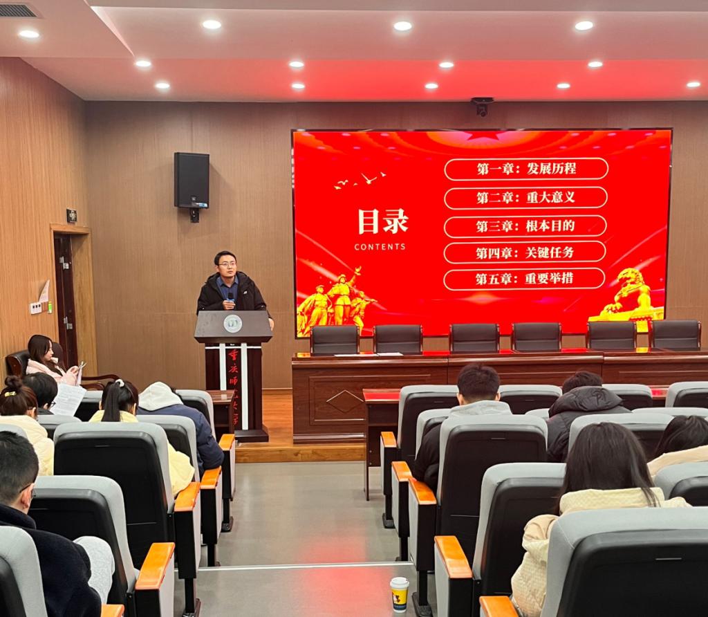 为深入贯彻党的教育方针,提升党员的政治素养和责任意识。2025年1月6日下午,研究生二党支部在汇贤楼122教室举行党课学习教育。支部书记朱树亭担任主讲人,全体党员参加。