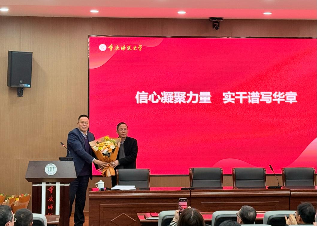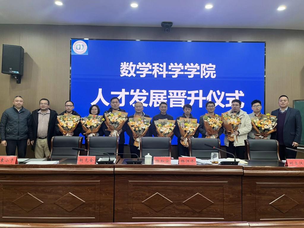 之后,学院隆重举行2024年度人才发展晋升仪式,表彰在职称评聘、市级人才称号获得的教师。陈焦、唐肖和唐大钊3位教师在2024年度职称评聘中获得晋升,夏远梅、李小林、张文萌、郑方阳、赵克全、蔡钢、张新功和李觉友8位教师在2024年度获得市级及以上人才称号。杨书记代表学院恭喜11位教师在上年度取得成绩,号召全体教师学习标杆,激励大家勤奋努力、奋勇争先、建功立业。学院党政领导为11位教师赠送了鲜花和祝福,并合影留念。