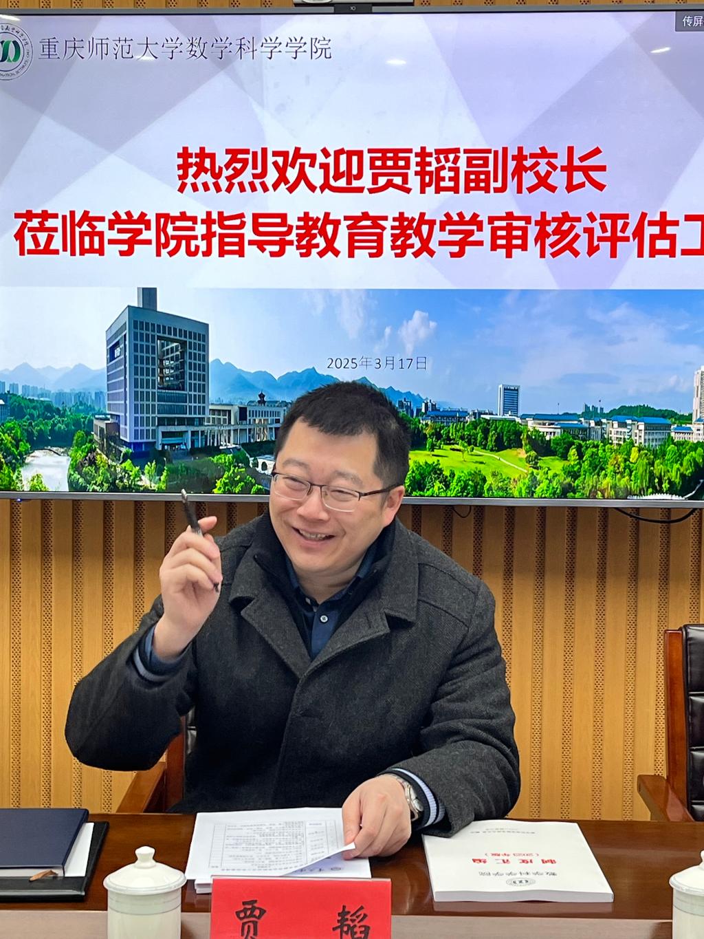 2025年3月17日上午,贾韬副校长和信息技术中心杨德刚主任莅临我院指导本科教育教学审核评估迎评工作。学院党委书记杨江水、院长赵克全、副书记袁小于、副院长张文萌、副院长刘立汉参加本次座谈会。