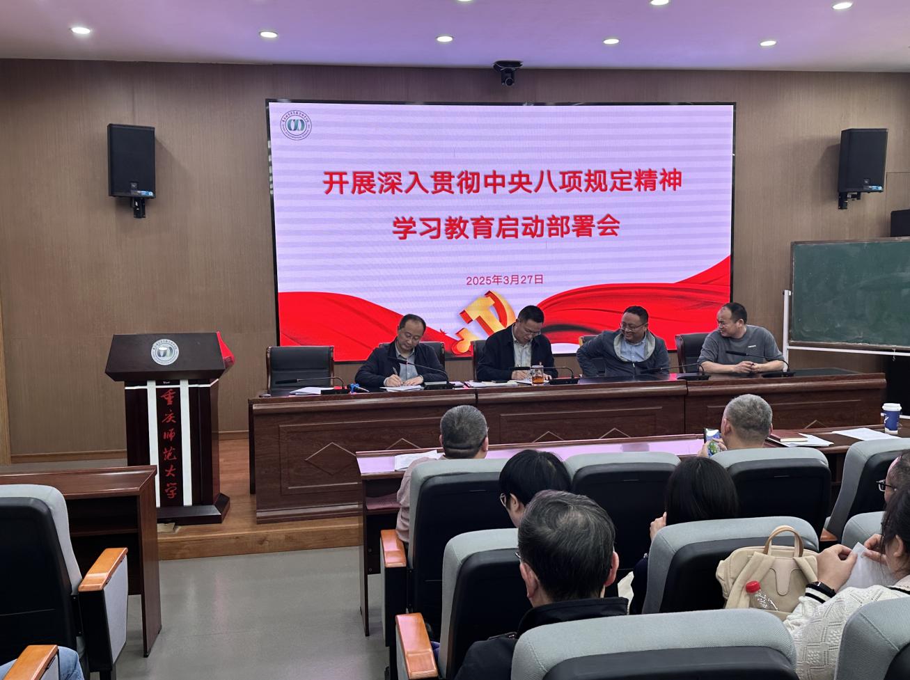 3月27日,PA视讯官网在汇贤楼122报告厅召开全面从严治党工作会议。学院党委副书记、院长赵克全主持会议,党委书记杨江水作总结讲话,全体教职工参加会议。