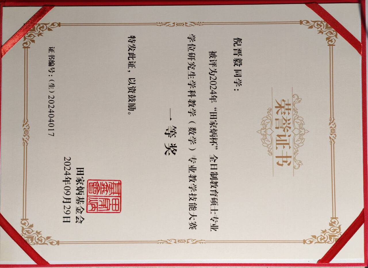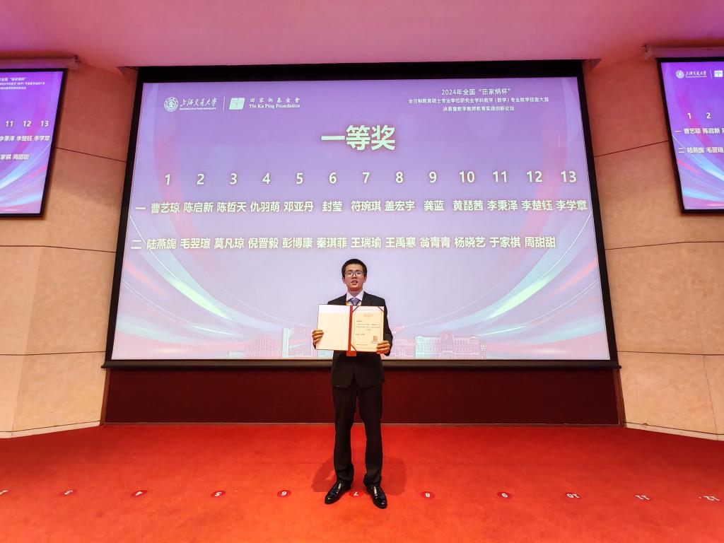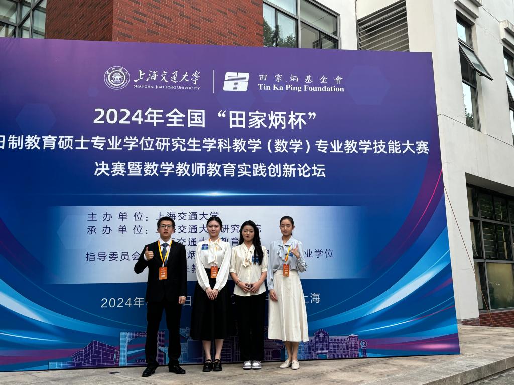在9月29日圆满落幕的上海交通大学“田家炳杯”全日制教育硕士学科教学(数学)专业教学技能大赛决赛中,我校数学学院的学生们传来捷报。2023级学科数学专业的倪晋毅(指导老师:李明振、张新功)获一等奖,李佳欣(指导老师:仲秀英、李明振)获得二等奖,杜沙沙(指导老师:张新功、仲秀英)获得三等奖,卢曼(指导老师:沈林、徐家发)获得优秀教学设计奖。