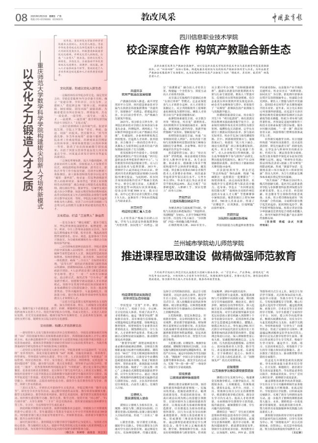 三是强化尊师乐教、诲人不倦的精神,营造良好的育人氛围。学院抓好人才发展晋升仪式,鼓励教师在科研创新、教书育人、职称晋升等工作中取得突破。持续开展教职工荣休制度,建立退休教师教育教学回忆录与“精彩一课档案”,传承老一辈优秀教师教书育人的精神财富。推崇营造“把课上好是教师崇高的师德”理念和建立师德失范处置法则,践行善待学生、服务学生、引导学生成长成才的办学使命。杨新民教授领衔的教师团队获得全国高校黄大年式教师团队荣誉称号和重庆市教学成果奖一等奖,学院院长被评为重庆市教书育人楷模,培养了以中国科学院院士马志明为代表的数万名服务国家建设的优秀人才。