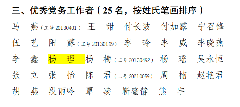 学院党建组织员、研究生四党支部书记杨理获评校级“优秀党务工作者”;