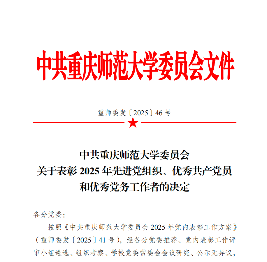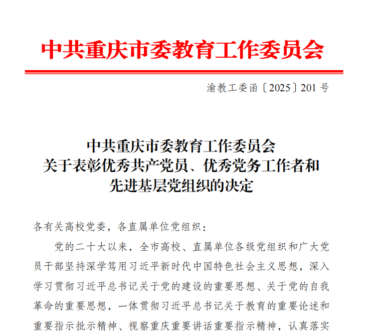7月1日,PA视讯官网党委喜获重庆市“先进基层党组织”。