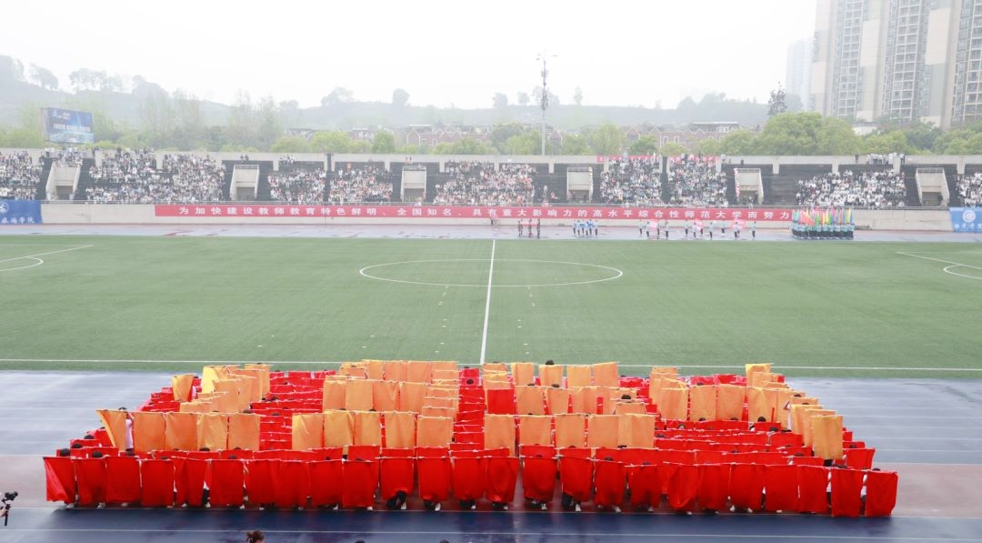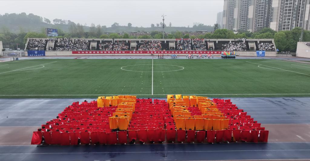 4月11日上午,运动会开幕式拉开帷幕。我院带来的开幕式表演,以一场震撼人心的舞龙表演拉开帷幕,舞龙者手持金色长龙,宛若神龙腾空盘旋,勾勒出一幅栩栩如生的神奇画卷。紧接着,国旗队、校旗队、标语队、彩旗队、院旗队、学院方阵依次进入会场,走过主席台,27个风格各异的方阵,27支满腔热忱的队伍。其中,我院2023级325名同学手持红橙双色彩旗,手中的彩旗翩翩起舞,交织出一幅色彩斑斓的壮丽画卷。彩旗舞动间,相继呈现出“1954”、“2024”、“70”、“校徽”、“无穷”、“爱心-党徽”、“cnu”的字样,寓意着七十年征程的壮阔历程,岁月的不朽荣光。最后,手持飘飘彩带的舞蹈表演者们以优雅的舞姿为整场表演画上圆满的句号。