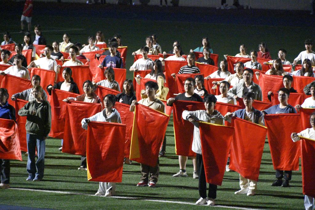 为了给全校师生呈现一场具有数学特色、紧扣学校发展重要时刻的开幕式演出,学院演出策划团队克服时间紧、经验少、课程多等困难,反复斟酌、几易方案,谋定而后动。2023级同学承担了团体操表演这个17年一个轮回的历史使命!