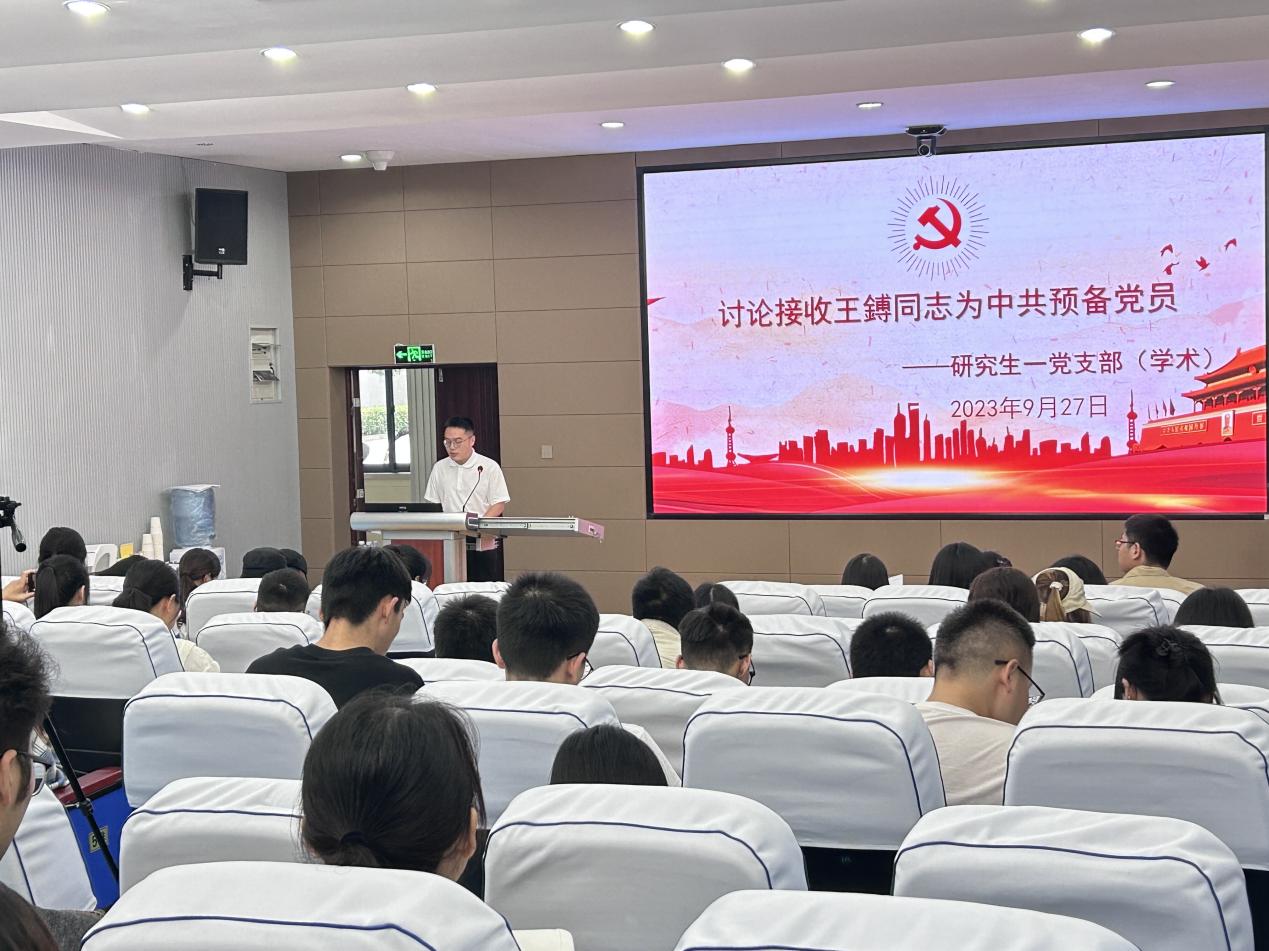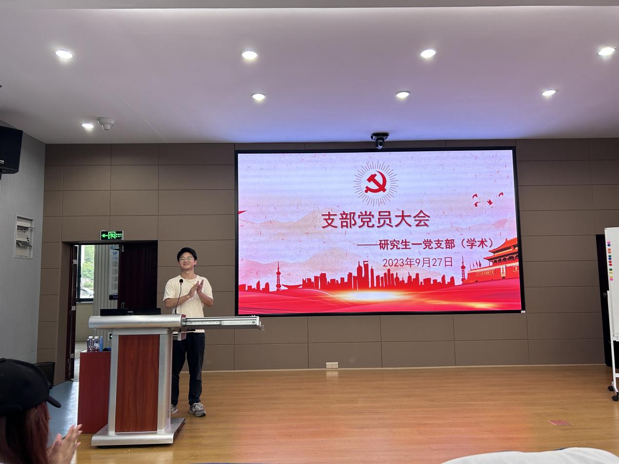 2023年9月27日,研究生一党支部(学术)在国家应用数学中心115召开支部党员大会。本次支部大会共两项议题:第一项议题:欢迎我们新生(研一、博一)党员加入研究生一党支部(学术);第二项议题:讨论接收彭月等6位同志为中共预备党员;89位党员同志参加会议,会议由支部副书记冉诗建同志主持。