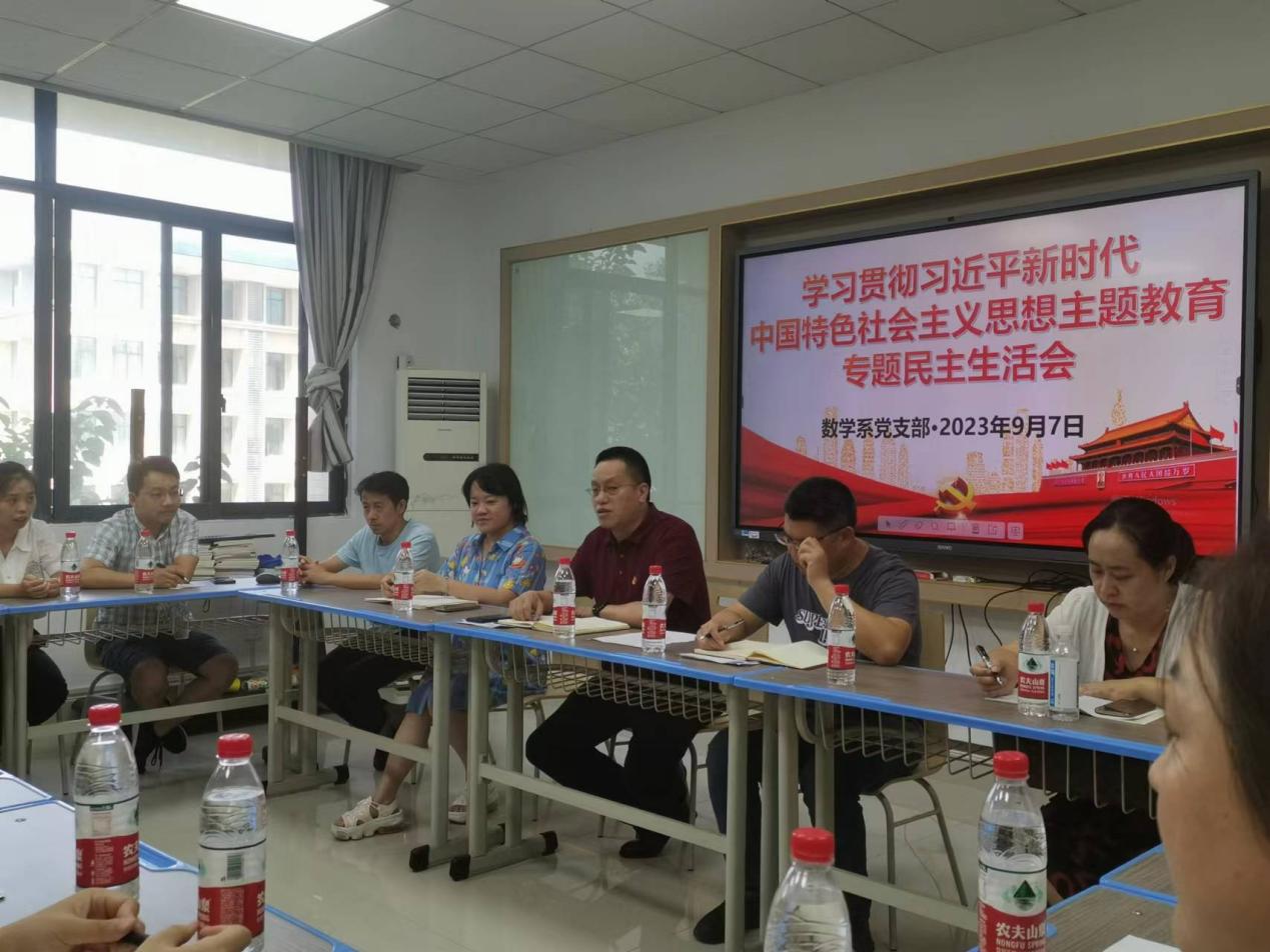 2023年9月7日下午,数学系党支部在学院B区311会议室召开了学习贯彻习近平新时代中国特色社会主义思想主题教育专题组织生活会。学院党委书记杨江水同志莅临指导,党委委员童莉、专职组织员杨理列席,会议由支部书记何立官主持。
