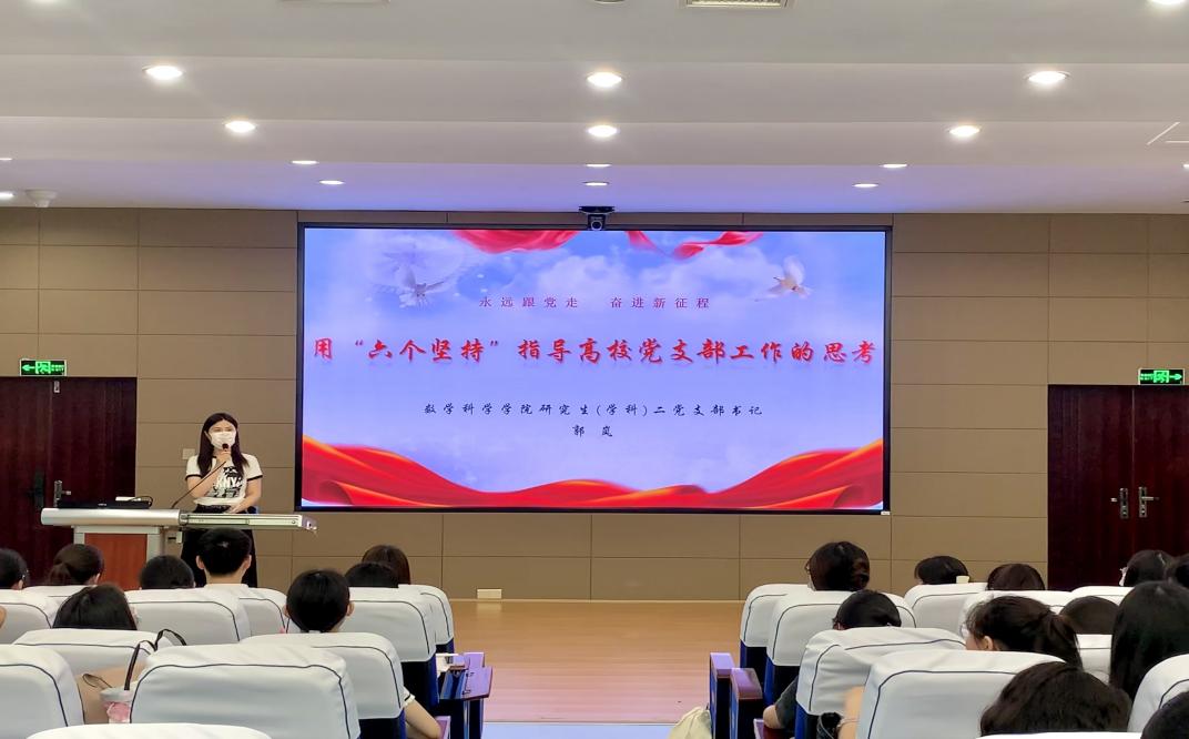 会议进行第二阶段,党支部书记郭岚同志就近期主题教育活动的学习进行分享,她指出:我们必须要用“六个坚持”指导党支部的工作,要深刻领悟其中的道理学理哲理,坚持好运用好贯彻其中的立场观点和方法,推动党支部工作更加高效、高质量地开展。