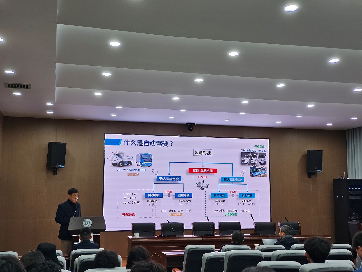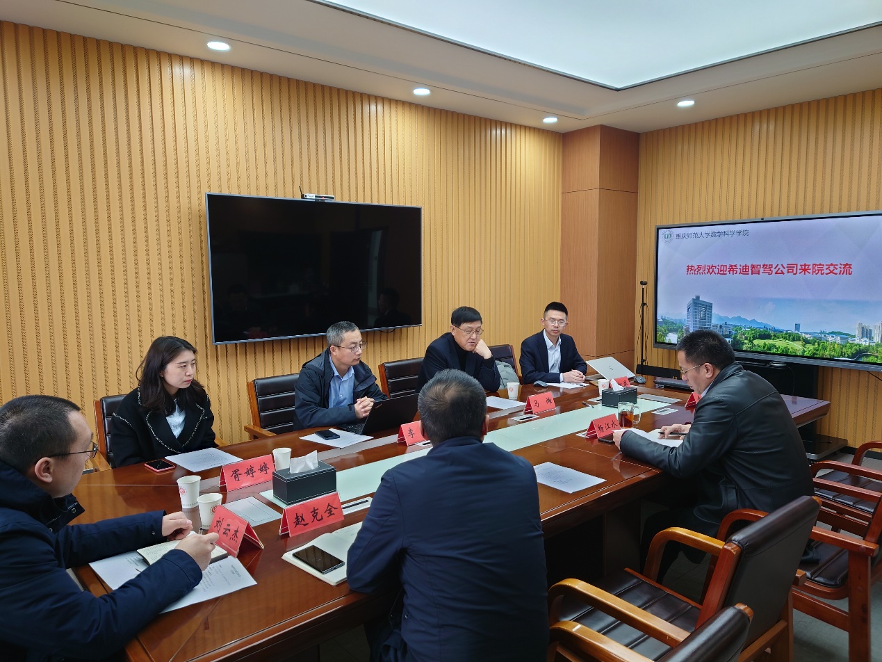3月24日上午,长沙希迪智驾(长沙智能驾驶研究院)公司联合创始人、总经理马潍博士一行应邀前来学院交流。马潍博士为学院师生举行了《走进自动驾驶、探索发展之路——自动驾驶距离我们有多远?》的精彩讲座。讲座后,学院班子、重庆国家应用数学中心刘云杰老师、马潍博士及随同来访的新驱动重庆智能汽车有限公司总经理李焱、副总经理岳红举、人力资源经理胥婷婷等一同举行了座谈会,双方深入交流了智能驾驶、人工智能和大数据行业的发展现状、趋势和人才需求状况,学院向希迪智驾发出了招聘邀请。