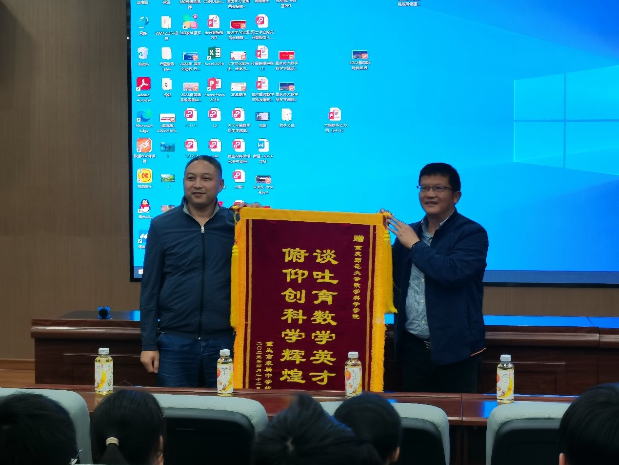 4月22日,重庆求精中学副校长杨培带领该校高二年级数学备课组赵开明、刘建、赖白雪等老师和高2021级38名学生前来学院交流研学并探讨了新形势下中学数学教育课程思政的形式和效果评价。来访的求精中学领导和老师都是学院校友,交流中他们对师范专业的培养方案提出了许多中肯的建议。杨培副校长还代表求精中学向学院赠送了锦旗。