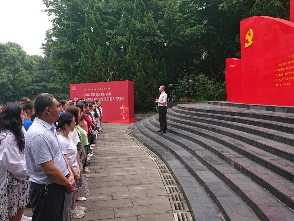 2021年6月24日下午4:00,学院党委组织新党员和毕业生党员,在学校宣誓墙前举行100人宣誓活动,活动由党委副书记袁小于同志主持。