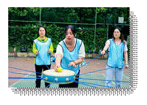 之队、美少女战士队、牛气冲天队、奥利给队四组,分组完成了“同心鼓”项目。