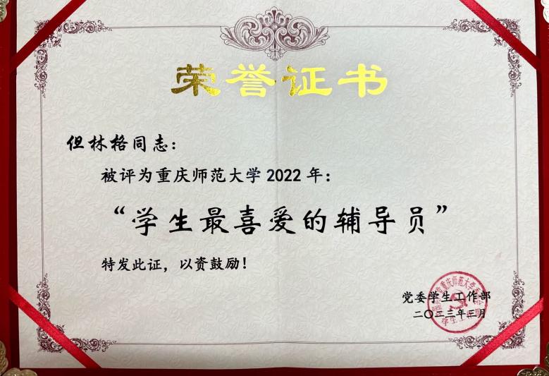 2023年3月9日,学校召全校学生工作大会,表彰2022年学生工作先进单位和个人。我院辅导员但林格老师获“学生最喜爱的辅导员”荣誉称号、吕朋霞老师获“资助育人贡献奖”。