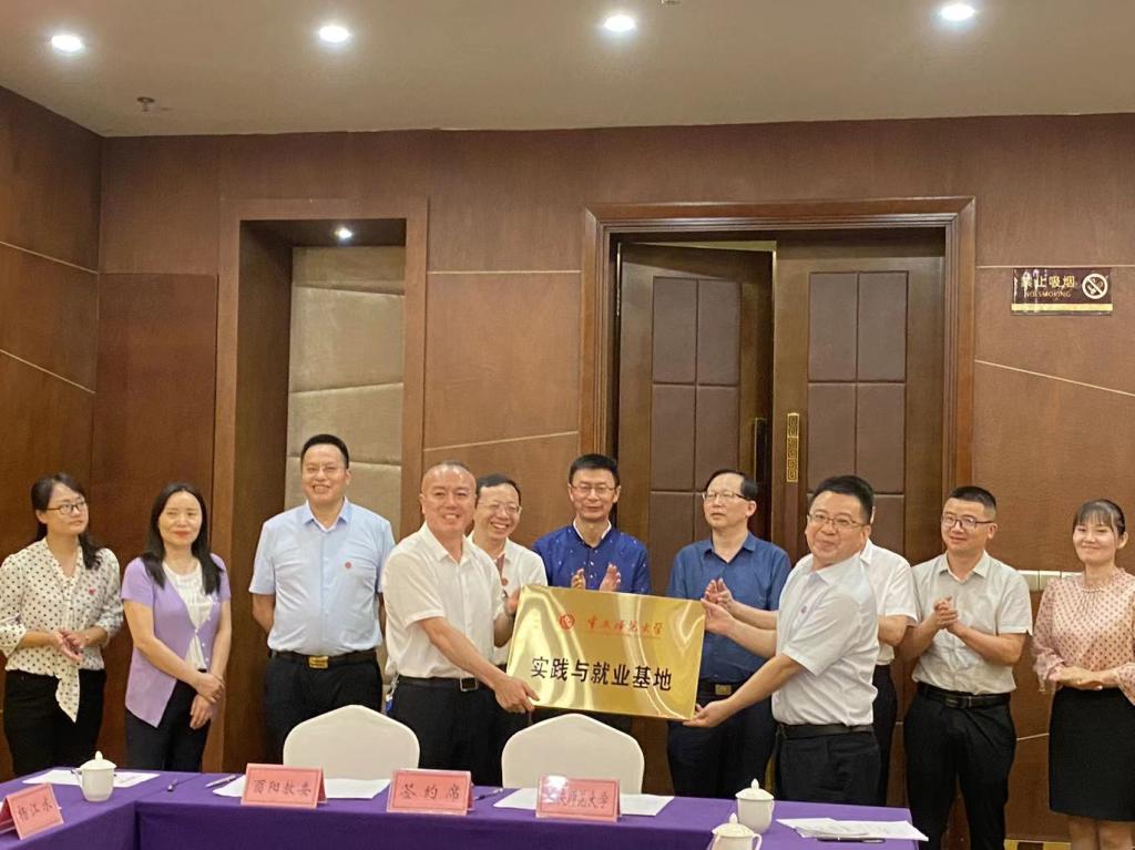 再次,我校招就处处长冉久飞介绍了学校在酉阳藉学生近三年的招生就业情况,并对学校学生培养及发展进行了展望,需要校地加强合作互动,服务好地方经济社会发展。冉处长代表学校与酉阳县教委签订了实践与就业基地协议并授牌。