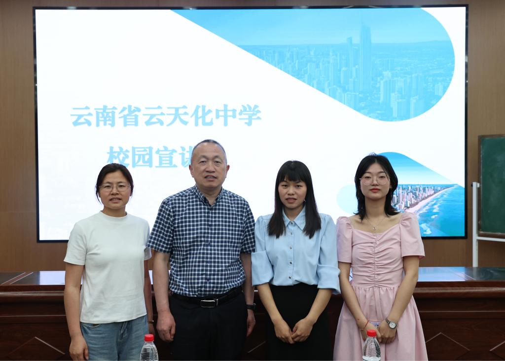 活动中,贺善兵副校长结合自身丰富的教育管理经验,为在场学生提出职业发展建议。他强调,大学生应树立远大理想、做好职业规划、广泛阅读、学会生活与社交,并针对教师的成长路径,详细阐述了应具备的核心能力与提升方向,包括扎实学科知识、提升教学技能、注重教育理念、提升综合能力等方面。随后,贺善兵副校长从办学理念、校园文化、发展历程、教学成果等多方面,全面介绍了云天化中学的办学特色与优势。