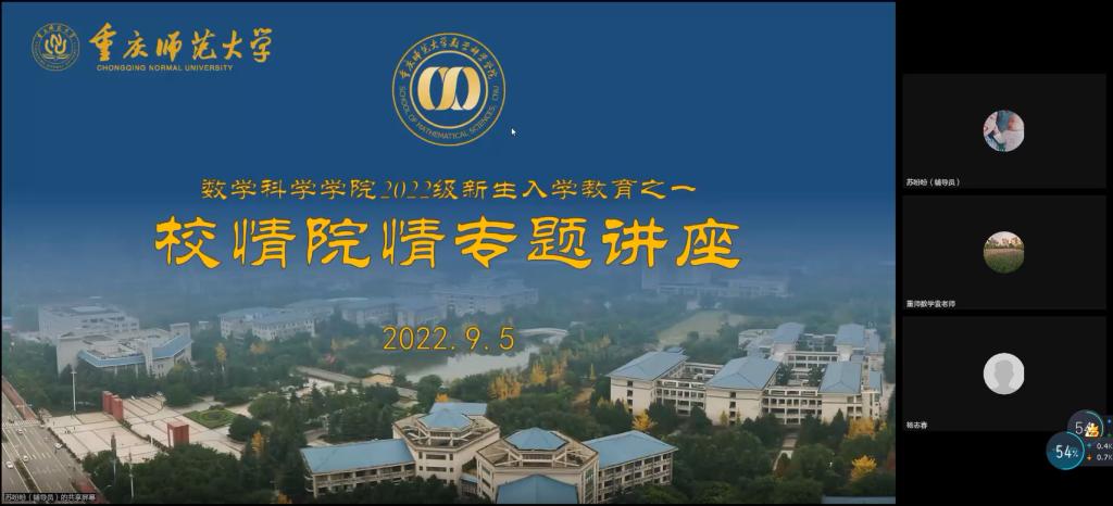 2022年9月5日以来,学院按照学校疫情防控要求和新生入校教育总体部署,陆续采用集中和分散形式开展了“云”上入学教育活动,于近日全部圆满完成。活动由新生辅导员程伟、苏盼盼老师全程组织,邀请了学院领导、各系负责人、专业课教师、专职辅导员、高年级学生等共计20余人作为主讲嘉宾,全体2022级新生在线参加。