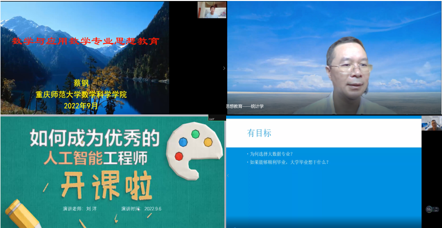 罗洪林、蔡钢、王洪春、刘洋等老师分别对数据科学与大数据技术、数学与应用数学、统计学和信息与计算科学专业学生开展了专业思想教育,介绍了各专业的发展现状、前景和培养方案,并对大家四年的专业学习提出了自己的建议。