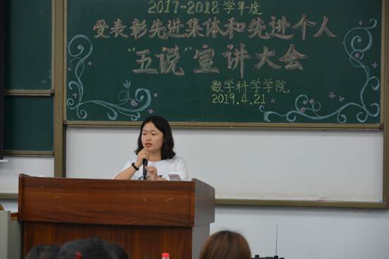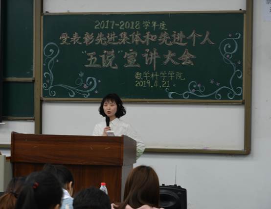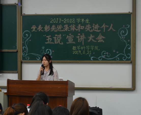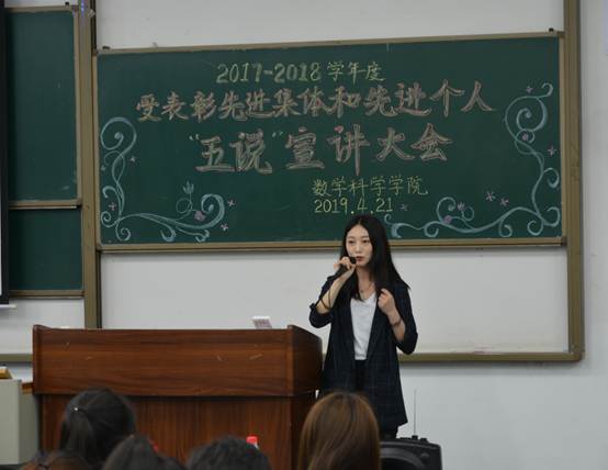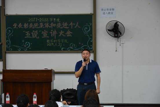 2019年4月21日18:30,PA视讯官网2017-2018学年度受表彰先进集体和先进个人“五说”宣讲大会(二)于图北楼7101举行。参加此次活动的有马克思主义学院党委副书记姜土生老师、音乐学院团总支书记程小诗老师、新闻与传媒学院辅导员张康老师、生命科学学院辅导员段雨吟老师、我院党委副书记袁小于老师和各年级辅导员。