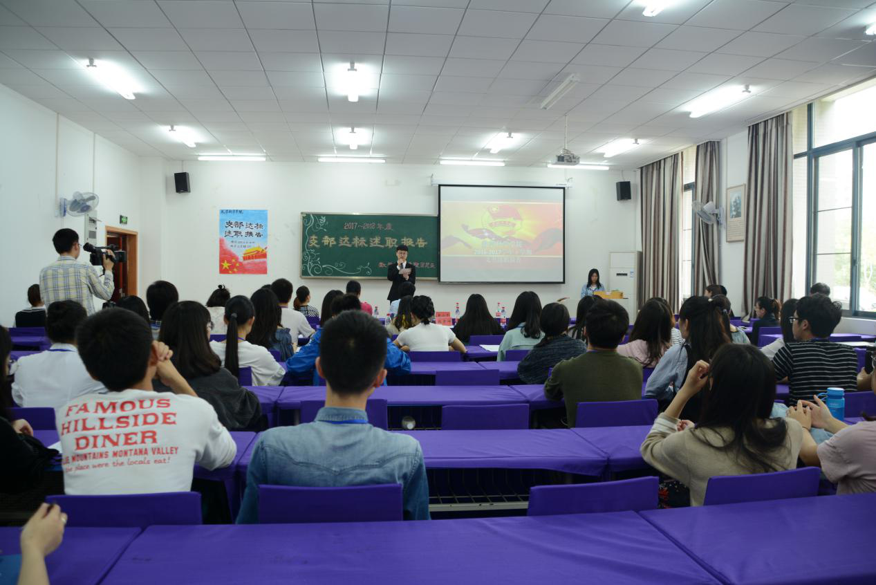 首先PA视讯官网组织部部长喻浩对去年组织部工作进行总结,并给予各支部团支书充分肯定,并提出2018年工作计划,明确组织部新一年工作思路。紧接着,各支部团支书依次上台,对支部上学年情况进行述职。团支书们大多从学习、工作、生活、班级建设四个板块介绍支部情况,展示清晰明了的支部框架。由于各支部情况不同,支部建设侧重点不同,各支部团支书结合所属支部自身情况,展现出各支部不同个性特色。支部达标定级评估从支部达标定级支撑材料、团支书述职情况、各支部上期表现三个方面进行,最终成绩由评委与学生会各部门共同评判。