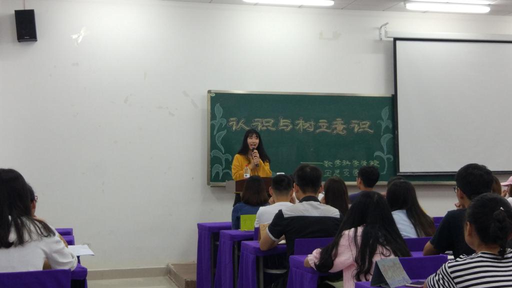陈欣阆学姐以认清自我为出发点,首先提出树立自我意识的重要性。强调认清自我是保持学生工作初心的根本,它使我们过着平凡的生活,但拥有英雄的梦想。并传达担任学生干部是一个锻炼自我的机会,但每个人通过学生工作学到什么,完全取决于自身的投入,自我的思考以及对自身问题的解决态度。