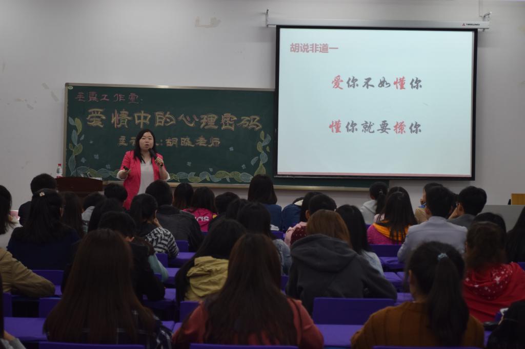 为帮助大学生树立正确的恋爱观,加强大学生恋爱教育,同时深入对大学生恋爱观的研究,2017年4月27日19:00,PA视讯官网毛霞工作室于学院楼122举办以“爱情中的心理密码”为主题的讲座。本次活动由PA视讯官网党委副书记毛霞老师主持,由西南政法大学胡晓老师主讲。