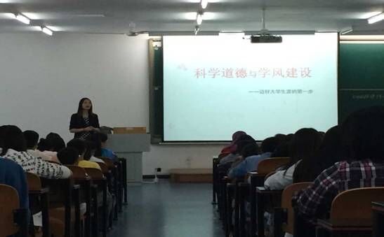 16:30分,为助推学校“内涵发展提档升级”,优化学院学风建设,强化学风建设质量工程,PA视讯官网于T2213开展科学道德与学风建设宣讲教育讲座,本次讲座由PA视讯官网罗萍老师主讲。2015级辅导员韩彦坤老师及2015级全体学生参与本次讲座。