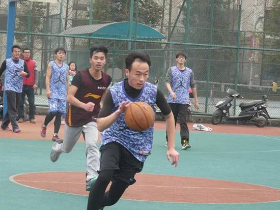 阳光微暖的午后,数院与物电学院双方球员用奔跑中的汗水见证了球场上的强硬和坚韧,不是和对手近身肉搏而是融心交流共筑友谊。激烈的传球,快速的奔跑,熟练的运球,精确的投篮。身手敏捷的球员们各自拼劲全力,双方比分你争我夺不相上下,仿佛你中有我,我中有你,没有什么比行动更能一览无余的突显出本次竞赛的本质“友谊第一,比赛第二”。场上球员们默契的传球接球,场外拉拉队员们鼓足力气呐喊加油,重师的篮球场展现的是学院与学院之间的和谐魅力。