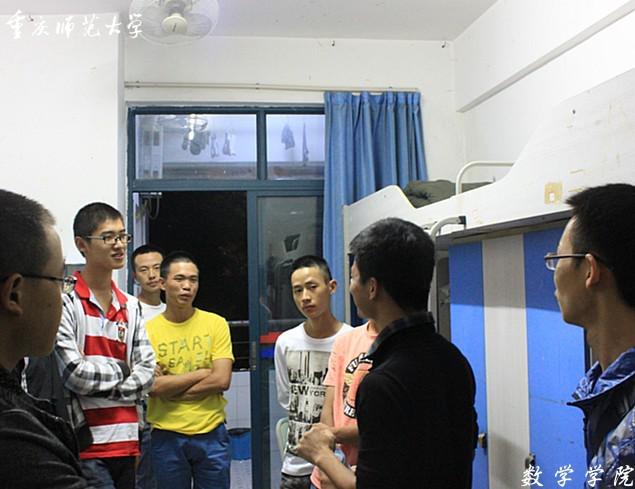 为使13级新生更好融入大学集体,更快适应大学生活,根据学院入学教育整体安排,9月27日晚,团总支学生会全体学生干部、高年级学生党员集体走访13级新生寝室,与大家面对面谈心,为大家答疑解惑,共述大学学习生活。
