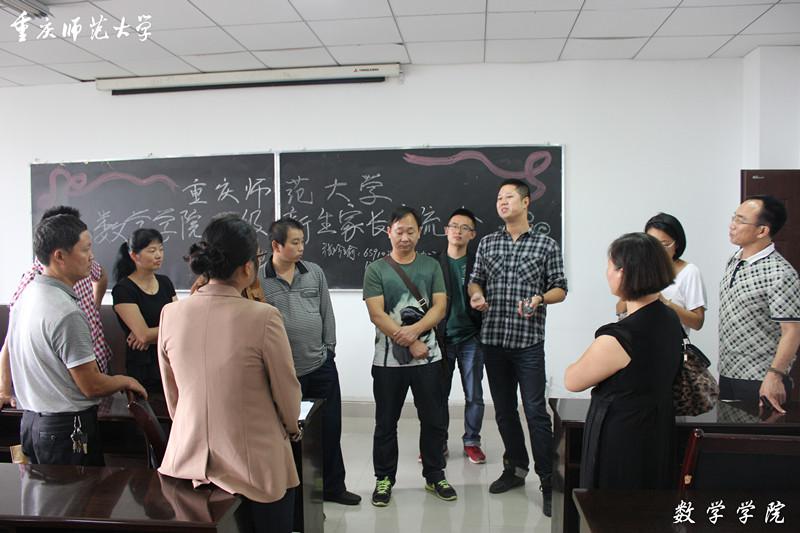 9月12日是PA视讯官网数学学院大学2013级新生报到的第一天,360余名大一新生在家人的陪伴下陆续来到了学校报到。令家长和新生们没想到的是,开学报到第一天,就接到了学校的家长会通知。数学学院新生家长会将在13号上午10点集贤楼412会议室举行。学院分党委副书记毛霞、团总支副书记李鑫、各年级辅导员参加交流会。