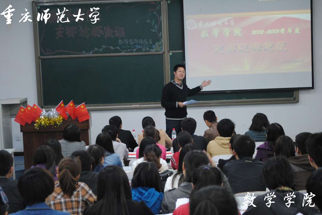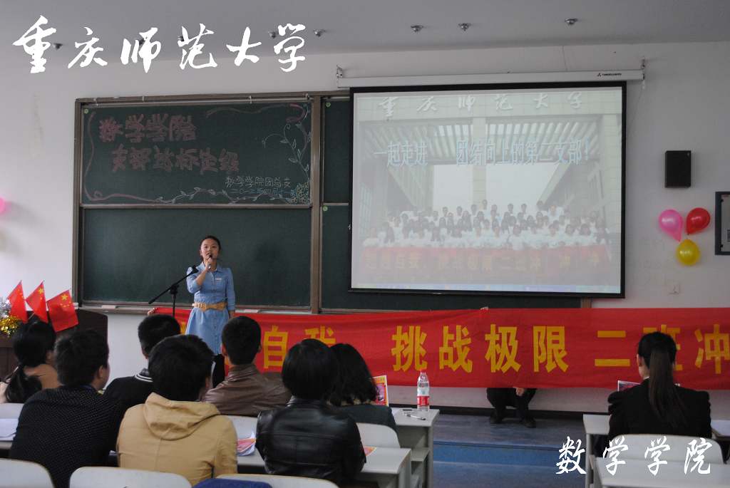 2013年4月11日下午4点,“2013年数学学院支部达标定级大会”在图北楼7206拉开帷幕。团总支学生会各部门担任了本次大会的评委,数学学院团总支副书记李鑫,各年级辅导员参加了本次大会。