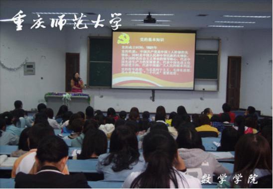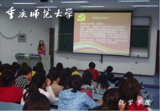 为了让2012级新生加深对党的了解,数学学院于2012年10月28日下午5点在弘德楼15105举行了“新生入党知识讲座”。讲座由分党委副书记毛霞主讲。