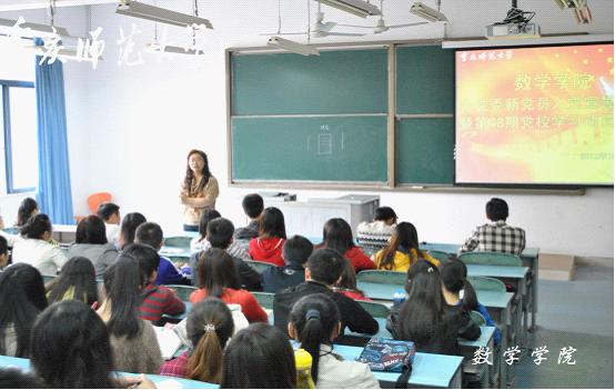 2012年10月18日下午一点,数学学院分党委学生支部新党员入党宣誓仪式暨48期党校学习动员大会在弘德楼5104室召开。本次大会由学生一支部书记、2011级辅导员韩彦坤主持,分党委委员、副书记毛霞,分党委委员、团总支副书记李鑫,学生二支部书记、2010级辅导员程伟及新入党的21名预备党员、全体团总支学生会成员和147名入党积极分子等参加了本次大会。