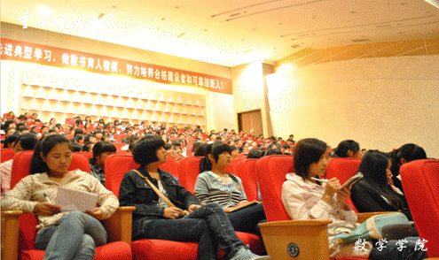 本次大会气氛良好,同学们仔细聆听。分党委副书记毛霞老师对这种积极良好的行为高度赞扬。相信在我院各级领导、老师的引导下,2012级新同学定会为数学学院的建设添砖加瓦!