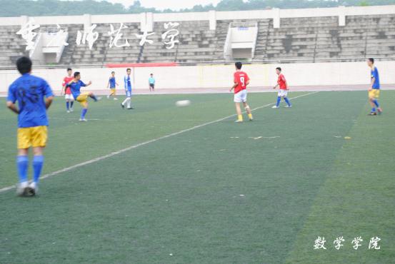 场上气氛令人窒息,响亮哨声伴着观众台上的“数学加油”,打破了沉寂的空气。湿漉漉的场地上奔跑着两方队员,黄色与蓝色的激情碰撞,汗水与雨水的热情相融。开场后不久,对方首先破门,这之后我院队员就像睡醒了的狮子,全线压上。漂亮的断球,专注的守门,也让对手没有任何可乘之机。实力相当的两支球队丝毫放松的防守,进攻,拦截,反进攻,就这样僵持的局面一直保持到了终场。最终数学学院三好杯足球赛揽回了“亚军”的好成绩。