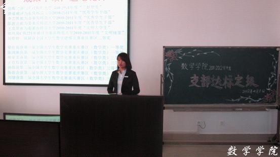为了积极贯彻落实校团委关于2011—2012年度“支部达标定级”的相关要求,4月8日14:30,数学学院“支部达标定级大会”在集贤楼412隆重举行。出席本次大会的有数学学院团总支副书记李鑫老师、11级辅导员韩彦坤老师和研究生优秀学姐王韵,19个支部亲友团参与此会。