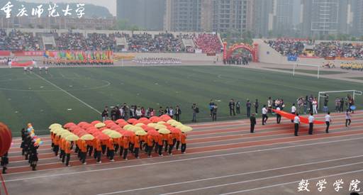 开幕式上,别出心裁的用红黄相间的雨伞组成“Lim”形状,掷地有声的口号“无限魅力,极限演绎”,铿锵有力的方队队列,赢得全场师生的瞩目。运动员在跑道上尽情挥洒着自己的汗水,身影遍布竞技场的角落;五千米的跑道上,有高举院旗陪同运动员环绕操场的人;沙坑旁边,有为运动员抱着衣服的人;跳高场地旁,有为每一道弧线衷心喝彩的人;大本营,啦啦队用声嘶力竭的助威声诠释着集体的力量,“数学学院,勇往直前”已经成为大家心心相印的见证,企盼和焦灼的眼神写满了集体和荣誉。