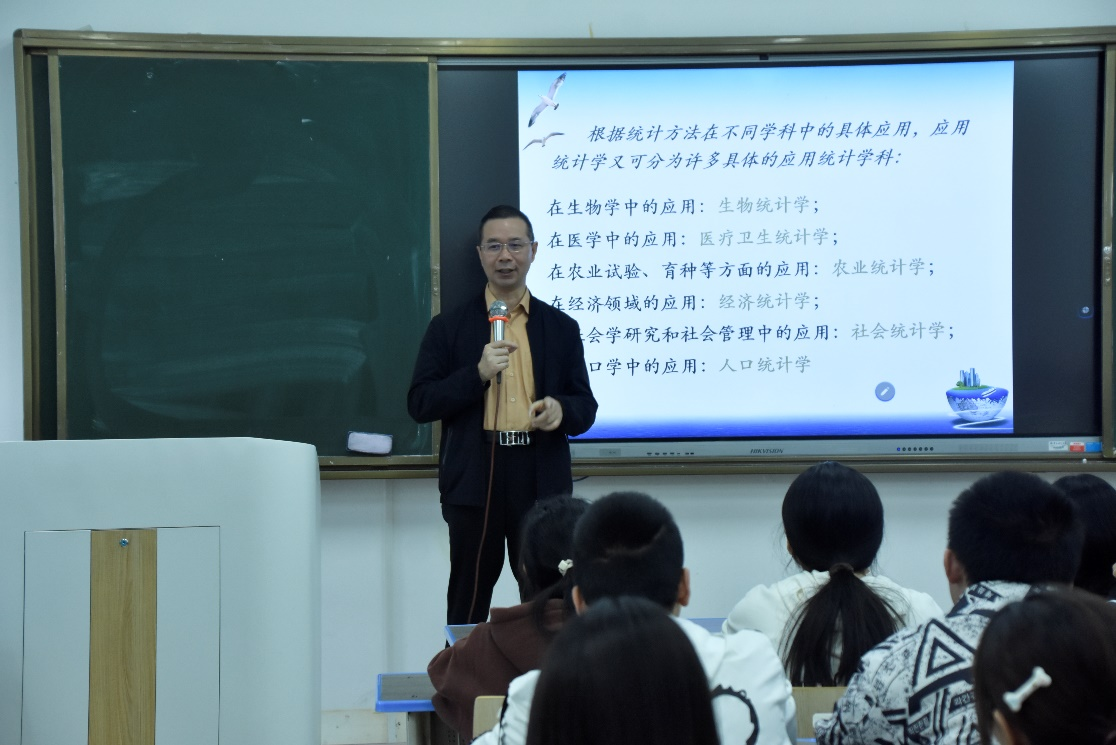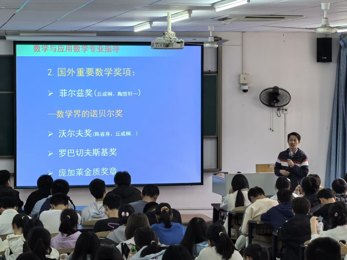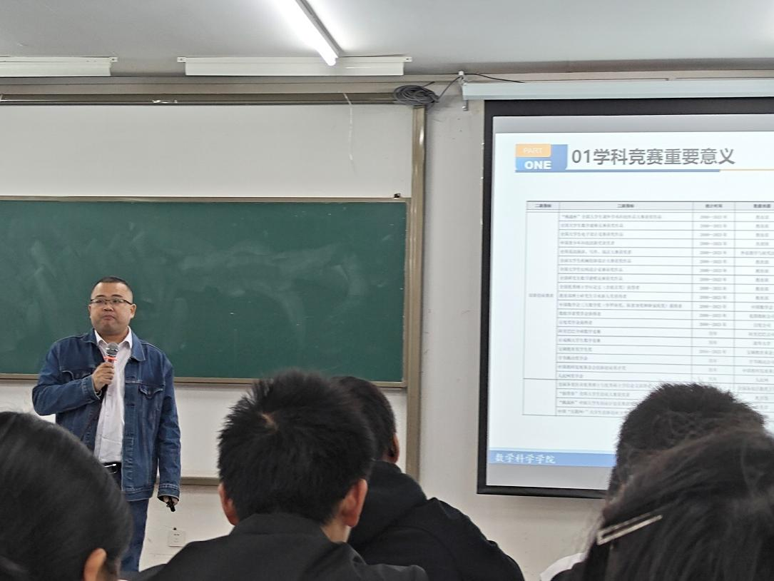 在专业思想教育方面突出专业针对性。应用数学系主任蔡钢教授针对数学与应用数学(师范)专业详细讲解了专业设置、就业前景以及大学教学计划的总体安排。运筹与统计系副主任王洪春教授从统计学的课程设置入手,详细介绍了统计学专业培养计划、专业课知识体系及应用前景等。运筹与统计系主任罗洪林教授结合数据科学与大数据专业本科人才培养方案,讲解了专业培养定位、课程设置、毕业要求和就业方向,并给出了具体的学习建议。副院长刘立汉教授举行了学科竞赛知识讲座,他鼓励同学们积极参加各类竞赛,提高专业实践能力。