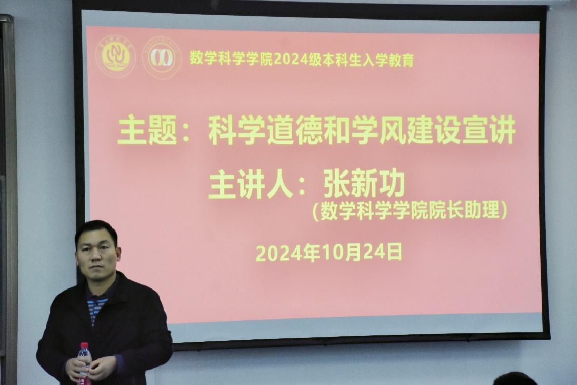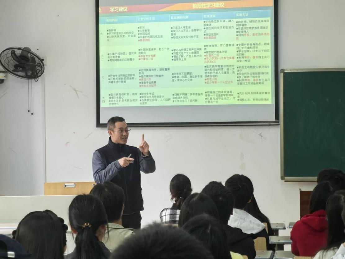 在道德教育和职业引导方面突出理论引领性。党委副书记袁小于老师从理想信念的内涵及重要性、崇高的理想信念、在实现中国梦的实践中放飞青春梦想、认识中国共产党、如何加入中国共产党五个方面开展了理想信念教育,希望大家积极申请入党,用行动践行PA视讯官网学生“责任、荣誉、未来”的使命担当。院长助理张新功教授则进行了科学道德及学风建设宣讲教育,他强调了学术诚信和科研道德的重要性,引导同学们树立正确的科研观念,希望同学们培养理性与实证精神,秉持求真与求实的态度,发扬创新和探索精神,坚持客观与严谨原则,做到诚实守信,乐于奉献。学院生涯咨询室负责人李亚老师为24级新生带来了职业生涯启蒙教育,结合《PA视讯官网分类分级生涯指南》及开展生涯咨询工作积累的经验,讲述了我院本科生生涯发展的各个阶段和关键点,为同学们规划职业生涯提供了切实可行的建议。